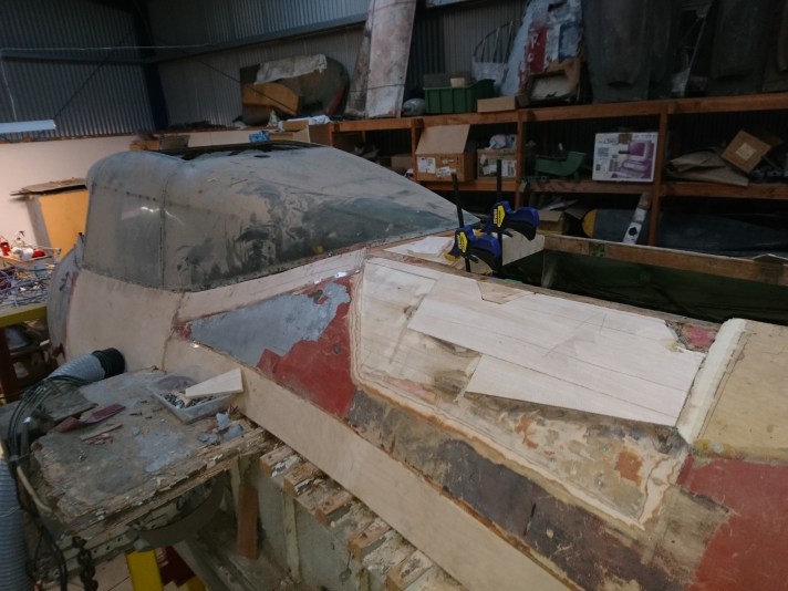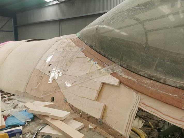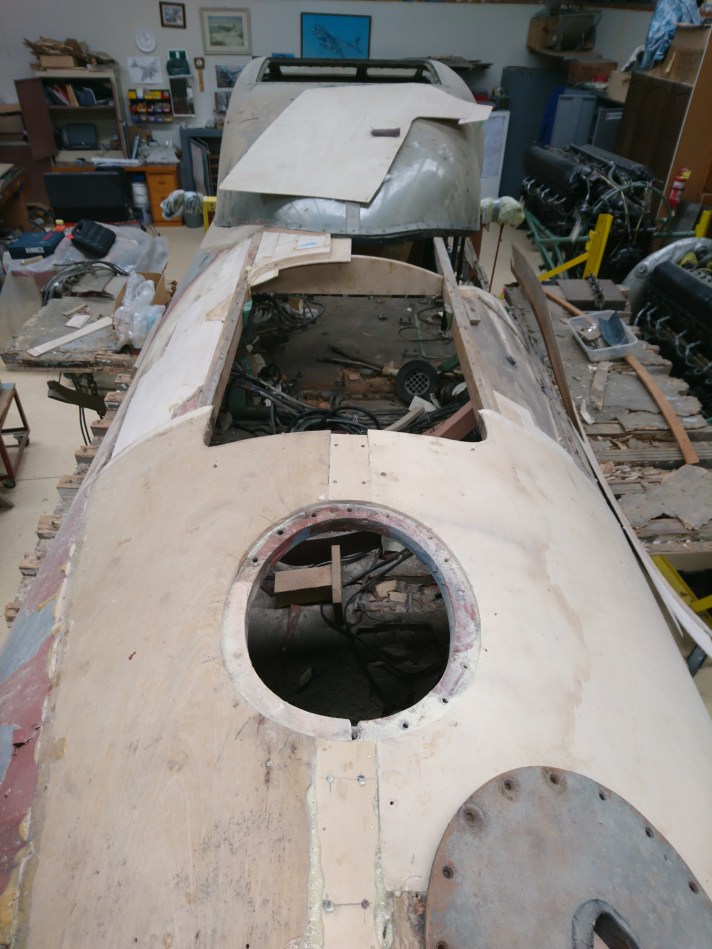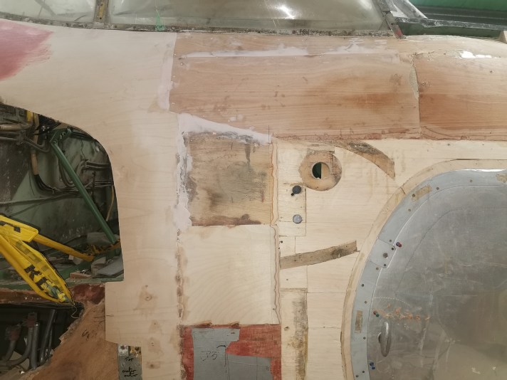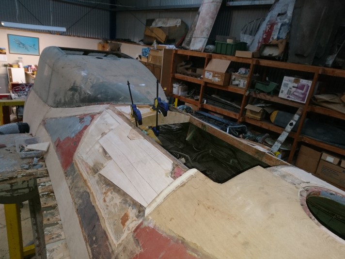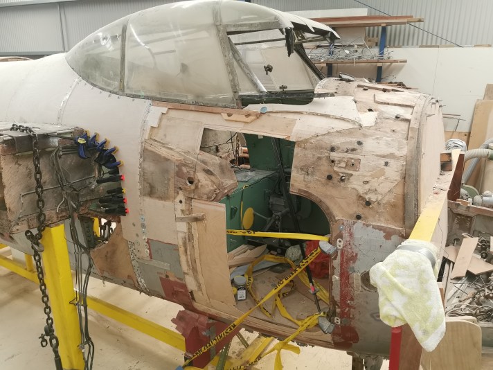 The restoration is lead by former RN Fleet Air Arm engineer and craftsman cabinet-maker Dag Guest. Restoration of the badly weather-damaged fuselage is largely complete, and the empennage is also substantially complete. The current focus of the restoration is moving to the wing as well as metal components such as engine cowlings and internal fitout. The project enjoys cooperation with a number of other Mosquito restorations around the world, especially the de Havilland Aircraft Museum at London Colney and the team under Tony Agar working on the restoration of Mosquito NF.II HJ711 at East Kirkby.