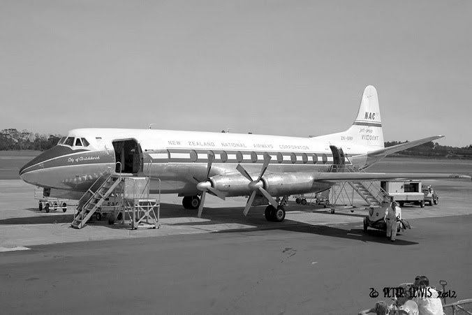 New Zealand National Airways Corporation introduced 3 of the type on main trunk routes in 1958. The type initially operated between Auckland and Christchurch, with routes to Wellington being introduced after the opening of the current airport at Rongotai in mid-1959. The fleet eventually expanded to 5 aircraft and coverage extended to other provincial centres. NAC Viscount operations ceased in 1975 following the introduction of the Boeing 737-200. The Viscount is remembered fondly by those who traveled on it for its passenger comfort, smooth ride and large windows, which were quite a contrast to the DC-3’s serving many provincial centres at the time.